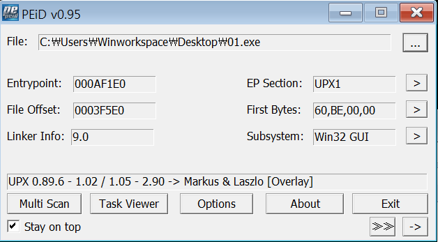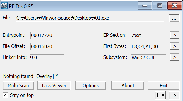 패킹을 풀고 난 뒤 PEiD 결과이다.