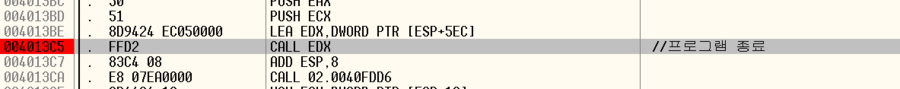 조금 더 진행하면 이 함수가 호출되고, 이 함수가 호출되면 프로그램이 종료된다. 처음에는 exit함수가 아닐까 했지만, 이 함수가 핵심 로직이다.
