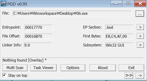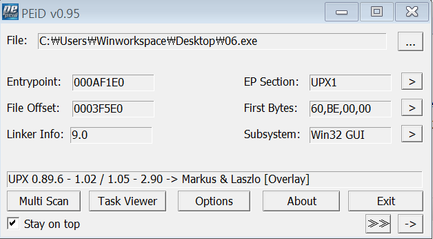 UPX 패킹이 되어있다. 패킹을 해제하고 다시 PEiD에 넣어보았다.