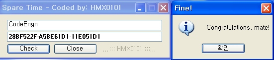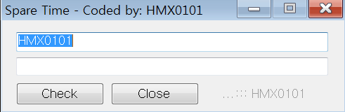 실행 하면 뜨는 창이다. 이름 부분에 글자가 이미디폴트로 써 있다. 아래 란에는 시리얼을 적는다. Check 버튼을 눌러도 반응이 없다. 별다른 오류 메시지는 띄우지 않는 것 같다.