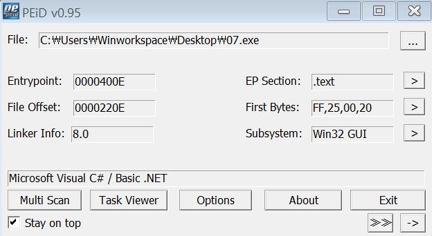PEiD로 조회해보니 C# 으로 구현되었음을 알 수 있다. 올리 디버거에서 실행되지 않는다. .NET Reflector를 이용하여 디컴파일 할 수 있다.