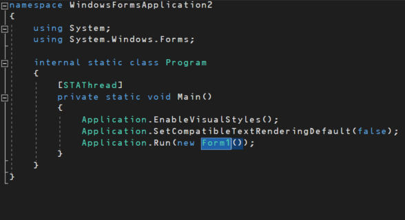 다음은 main 함수이다. Form1이라는 인스턴스를 생성한다.