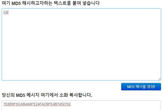 flag를 위해서 MD5 해시를 했다. flag는 7E8B9F5CAB4A8FE24FAD9FE4B7452702 이다.