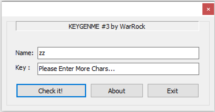 문제 조건으로 key가 주어졌고 이 key를 생성하는 name을 역으로 알아내야 한다. 프로그램을 한 줄 씩 실행하며 비교할 key를 생성하는 루틴을 찾는다.