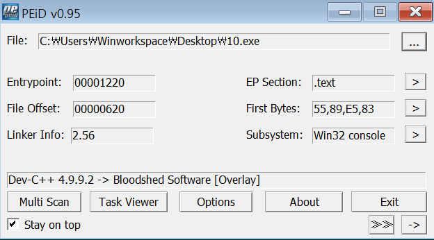 PEiD가 감지한 패킹은 없다. 브루트포스 하는 스크립트를 짜봤다. 대소문자 구분이 사실상 없기 때문에 소문자만 포함했다.