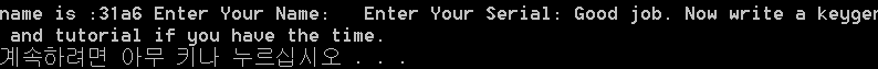 이름을 입력하면 시리얼을 이름에 맞추어 생성하는 것 같다. 키젠을 만들거나 브루트포스를 할 수 있겠다.