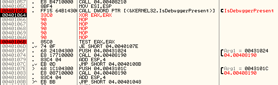 이 IsDebugPresent 함수에서 반환값으로 EAX에 1을 넣는다. 우리가 찾는 함수는 바로 이 함수이다. 사실 이 함수는 유명한 함수이며 Anti-Reversing 기법에서 가장 기초적인 기법이다.