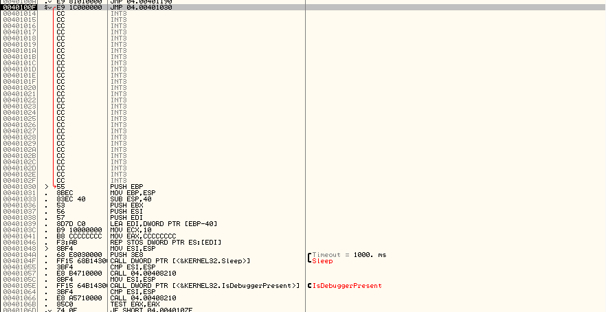방금 함수에 들어가 보니 jmp와 이어져 있다. 그리고 그 jmp를 따라가니 함수 프롤로그가 보인다.