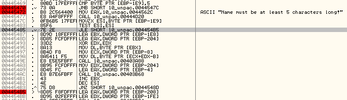 그냥 진행하면 이런 에러메시지가 뜬다. 이 에러를 띄우기 위해 cmp, jnb하는 코드가 문자열 바로 위에 있다.