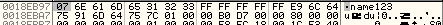 스택으로 가져오는 값은 7이다. 입력 값(name123)의 길이와 같다. 그렇다면 글자 수만큼 어떤 작업을 반복한다는 의미이다. 아무래도 key를 만드는 것 같다.