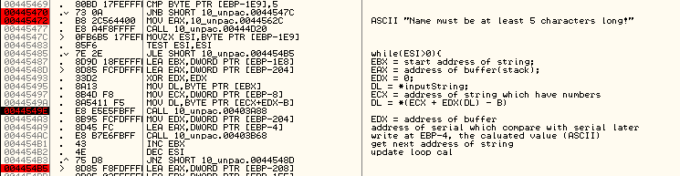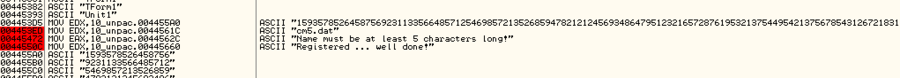 괜히 오기가 생겨서 key를 만드는 루틴을 분석했다. 대충 설명하자면 프로그램에 이미 있는 숫자 string과 name, 그리고 name의 길이을 이용하여 key를 만든다. name의 길이만큼 루틴을 반복한다. 그 결과를 버퍼에 저장한다.