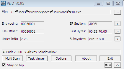 PEiD로 알아보니 ASPack으로 패킹되어 있다.