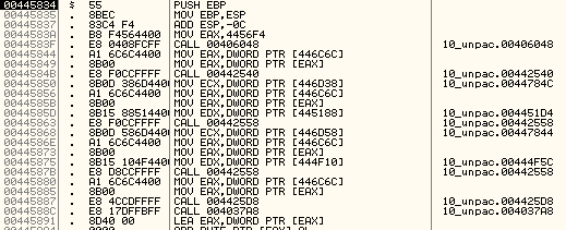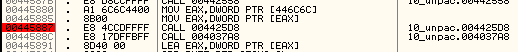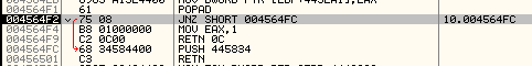 하드웨어 bp를 이용하여 POPAD에서 멈췄다. 바로 뒤에서 PUSH하는 곳으로 점프한다. 점프한 뒤 RETN한다. 이러면 함수를 호출하고 원래 자리로 되돌아가는 것처럼 그 주소로 점프하게 된다. 따라서 OEP는 00445834이겠다.