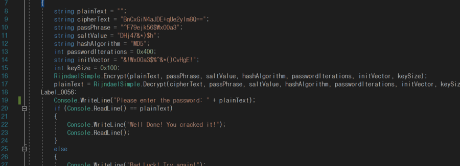 디컴파일이 예쁘게 된다. C#은 IL(Intermediate Language) 바이트 코드로 컴파일되며, IL은 고수준 언어의 구조와 의미를 상당 부분 보존하여 디컴파일 하기가 상대적으로 쉽기 때문이다. C#은 런타임에 JIT(Just-In-Time) 컴파일을 통해 네이티브 코드로 변환되기 때문에, 배포되는 어셈블리 파일에는 고수준의 중간 코드가 들어있다.