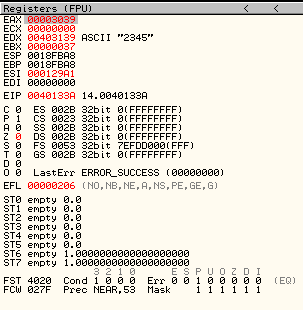 cmp하는 순간의 레지스터이다. EAX에는 12345을 16진수 변환한 값이 들어있다.