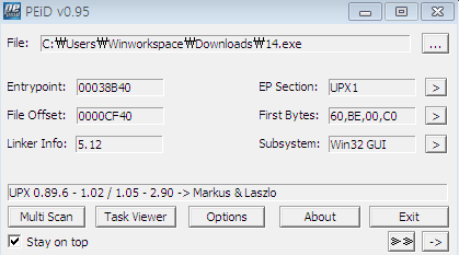 PEiD로 확인한 결과 UPX 패킹이 되어있다는 것을 알 수 있다. 패킹을 해제해 준다.