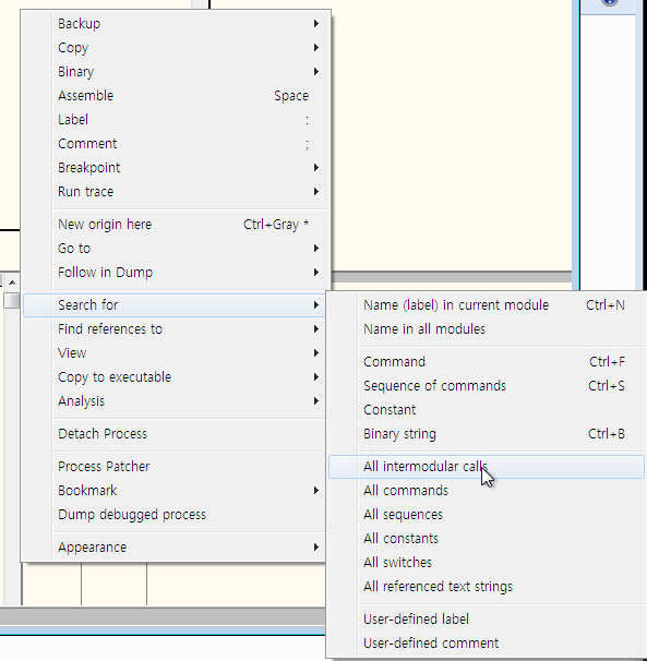 referenced text를 찾아보려 했는데 또 이런 경고창이 뜨고 실행되지 않는다. 그래서 이번에는 all intermodular calls를 검색하여 bp를 걸어보았다.