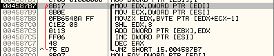 이후 코드에 주석을 달았다. name에 입력한 문자열의 각 문자에 접근해 shift연산을 하고 더한다. 이후 name의 길이를 shift 한 것을 45B844 버퍼에 더한다. 그 뒤 45B844버퍼에 저장된 값을 불러와 shift 한 뒤 저장한다.