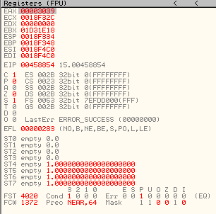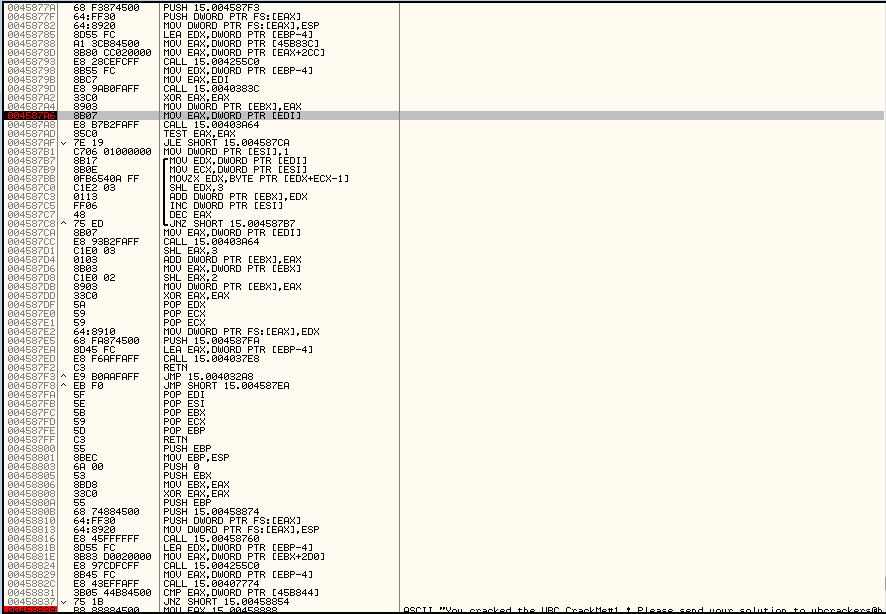 바로 위에서 EAX를 0으로 초기화하는 것을 볼 수 있다. 따라서 bp가 걸린 코드는 45BB44를 0으로 초기화하는 코드이다.