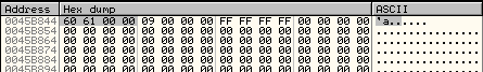 EBX에는 45B844가 있다. 이 주소를 메모리 덤프로 보면 0으로 차있다.