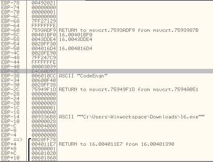 적당한 함수 리턴 코드를 넣어두고 함수를 지나쳐 간 뒤 원하는 위치로 return하여 위치를 조정하는 것 같다.