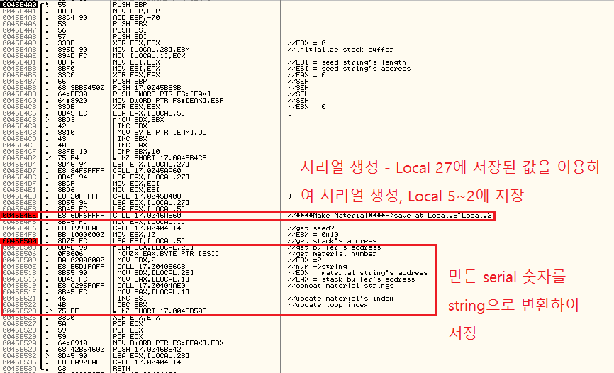 그 함수의 내부이다. 저 네모 표시한 함수에서 시리얼을 생성한다.