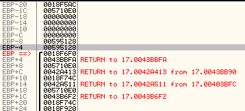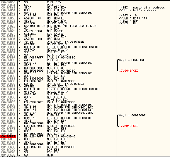 bp를 걸어놓은 0045BB75부터가 serial을 만드는 루틴은 것 같다. 그 밑에 bp가 걸린 call은 serial과 입력값 key를 비교하는 루틴이다. 이 사이에서 serial을 만들 것 같다.