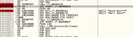 계속 진행하다 보니 성공 메시지를 띄우는 코드가 나타났다. 바로 위에 분기문이 있고, 그 위에는 call이 있다. 따로 cmp하는 부분이 없는 것을 보아 위에서 call 되는 함수에서 flag를 설정해 주는 것 같다. 이 call에 bp를 걸고 함수 내용을 살펴보자.