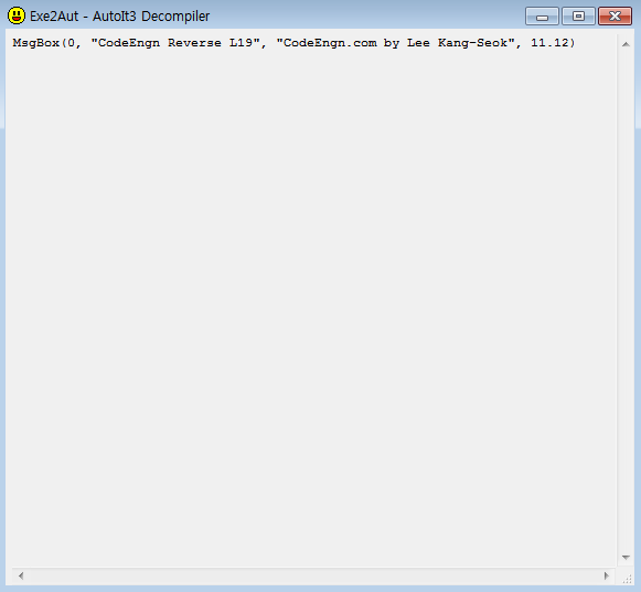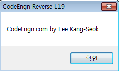 분기 코드에서 레지스터를 조작하여 조작해 보았다. 그 후 실행하면 더이상 Autoit 에러 메시지는 뜨지 않고, 처음에 프로그램을 그냥 실행했을 때 뜨던 창(CodeEngn.com by Lee Kang-Seok 문구)이 뜬다.