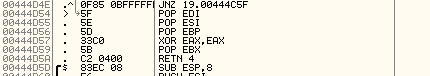 그리고 아까도 나왔던, 48E8D3에 저장된 값을 비교하여 0이 아닐 경우 점프한다. 0인 경우 아래 있는 스택 정리 코드로 넘어가고 함수가 종료된다.