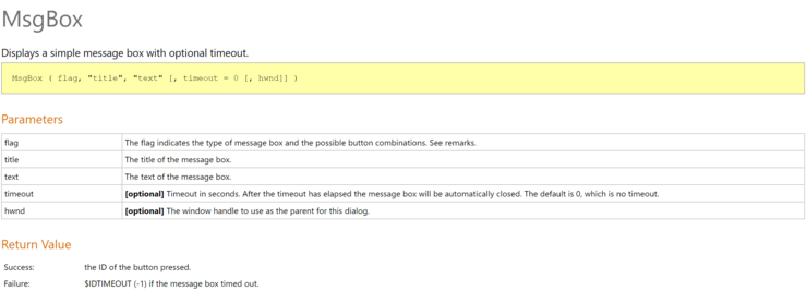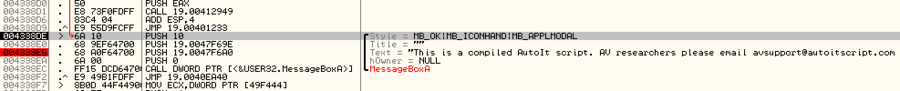 Autoit decompiler를 돌렸더니 Autoit 코드가 나왔다. MsgBox 함수의 인자가 무엇인지 찾아보았다.