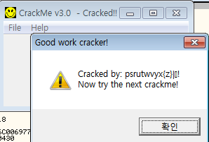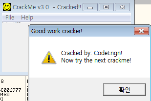 그리고 드디어 끝났다! 플래그는 저 더미값(CodeEngn과 뒤 4글자 사이)으로 무엇을 이용하느냐에 따라 여러가지가 가능하다.