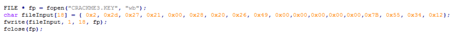 맨 앞부분 코드이다. 문제에서 언급한 이름(crakeme3.key)의 파일을 연다. 제대로 열지 못 했을 시 오류 처리문도 있다.