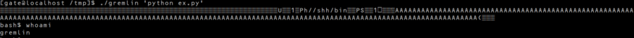 그대로 파이썬 인자를 넘겨 프로그램을 실행하면 gremlin의 권한을 가진 셸을 얻게 된다.