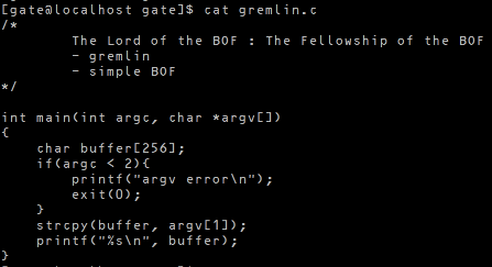 argv[1]내용을 buffer에 strcpy한다.