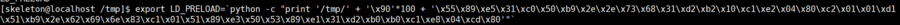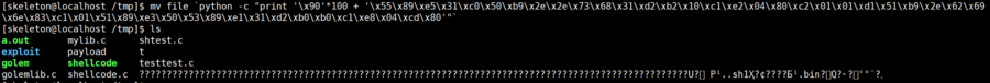 간단한 라이브러리 파일을 만들고, 그 이름을 셸코드로 바꾸었다. 단, 이 셸코드에는 /가 들어가서는 안 된다. 이를 경로로 등록해야 하기 때문이다.