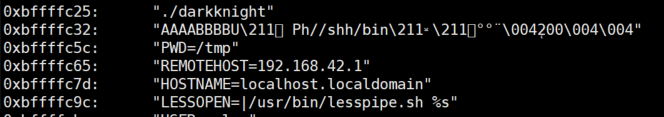 환경변수나 프로그램 이름 또는 인자 등을 이용해보려 했지만, 실험해보니 환경변수 위치는 주소의 앞자리가 달라 쓸 수 없었다. 지역변수와 가까운 쪽의 스택 주소를 이용해야 한다는 것을 알게 되었다.