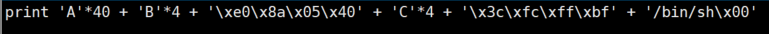 gdb로 system 함수의 주소를 알아보았다. LOB에는 ASLR이 걸려있지 않아 이 주소를 그대로 이용해도 된다. /bin/sh 문자열은 system 함수 인자 뒤쪽에 넣도록 했다. srtcpy가 null 문자로 인해 끝나는 것을 방지하기 위함이다.