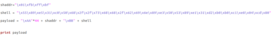 0xbffffb00 주소는 \x00 때문에 이용이 불가하므로, 1바이트의 더미 값을 넣었다.