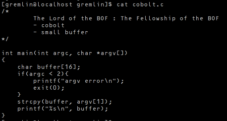 argv[1]내용을 buffer에 strcpy한다.