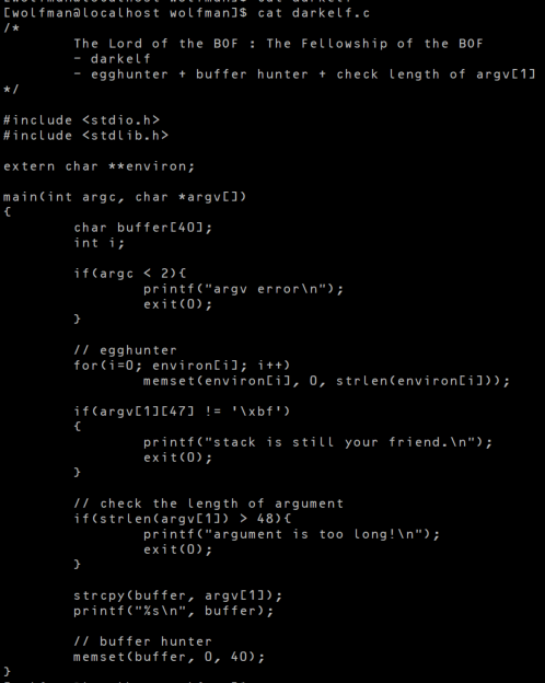 argv[1]의 48번째 글자가\xbf가 아니면 종료한다.argv[1]의 길이가 49보다 길 시 종료한다.- strcpy로 스택에