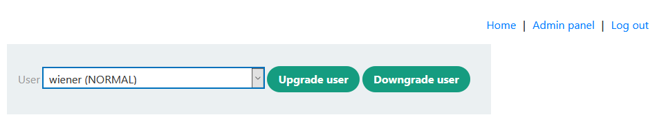 administrator 계정으로 로그인하면 위와 같이 유저의 권한을 조절할 수 있다. administrator로 로그인하여 wiener의 권한을 상승시키면 admin 페이지에 접근할 수 있지만, 이는 문제의 조건(wiener가 권한이 없는 상태로 admin 페이지에 접근하여 스스로를 관리자로 승격)에 맞지 않아 풀리지 않는다.