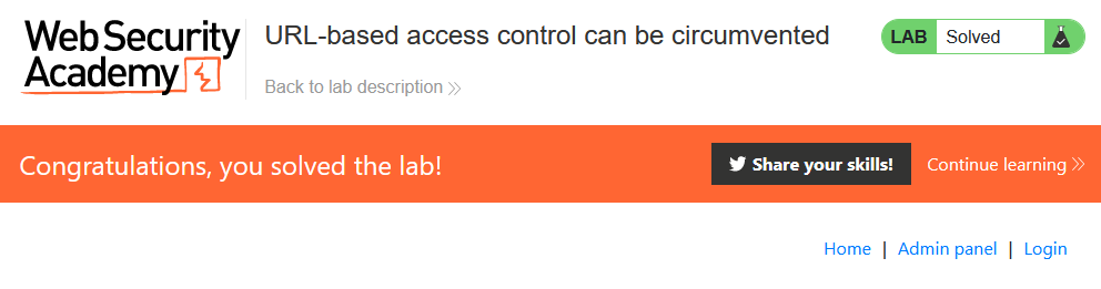 파라미터를 경로에 지정하면 해당 파라미터는 그대로 경로만 X-Original-URL로 재지정한다. 이렇게 carlos를 삭제하면 성공이다.
