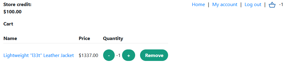 wiener:peter 계정을 이용해 로그인할 수 있다. 로그인하여 Lightweight l33t leather jacket 을 의도치 않은 가격으로 구매할 수 있다.