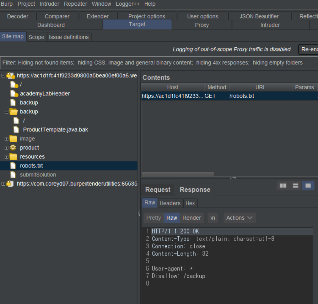 크롤러를 돌리면 robots.txt에서 숨겨진 디렉토리를 발견한다.