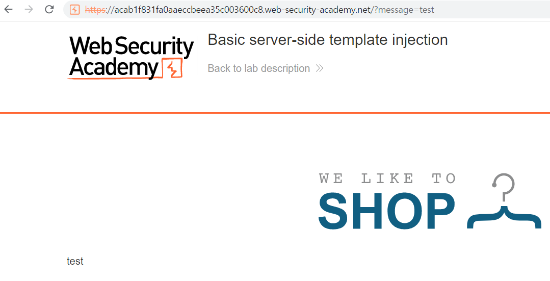 message를 임의의 글자로 변경 가능한지 테스트해본다. test를 입력했더니 test가 반사되어 보이는 것을 확인할 수 있다.